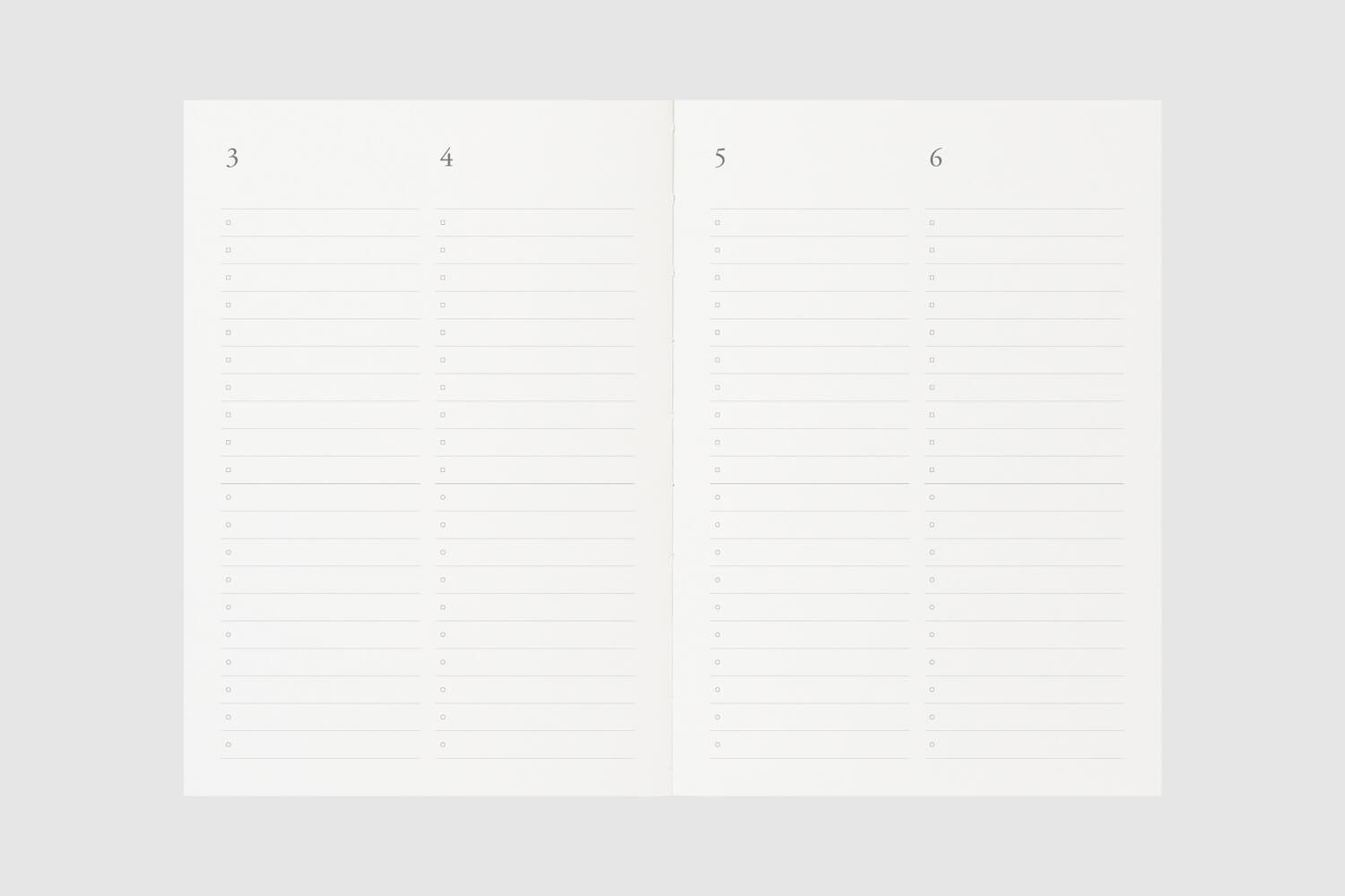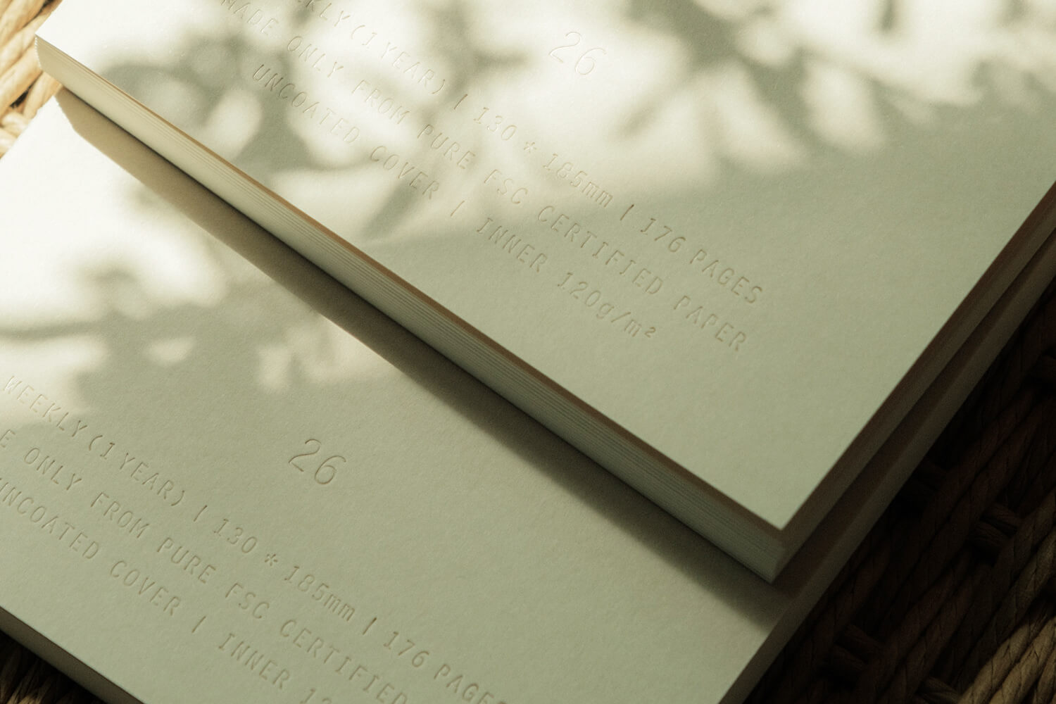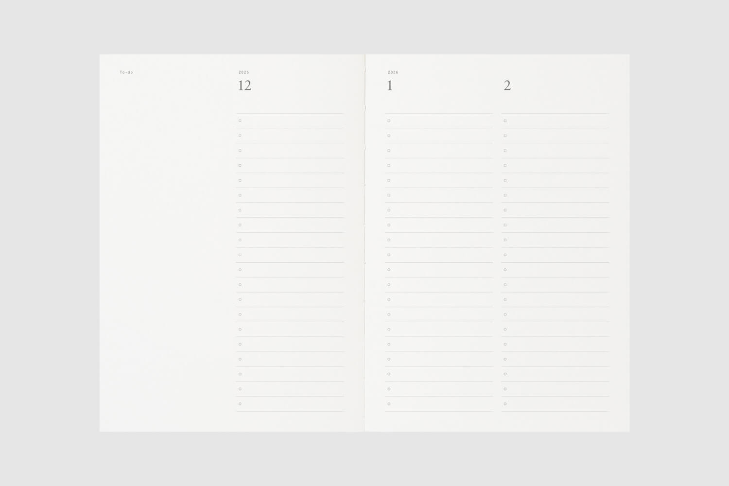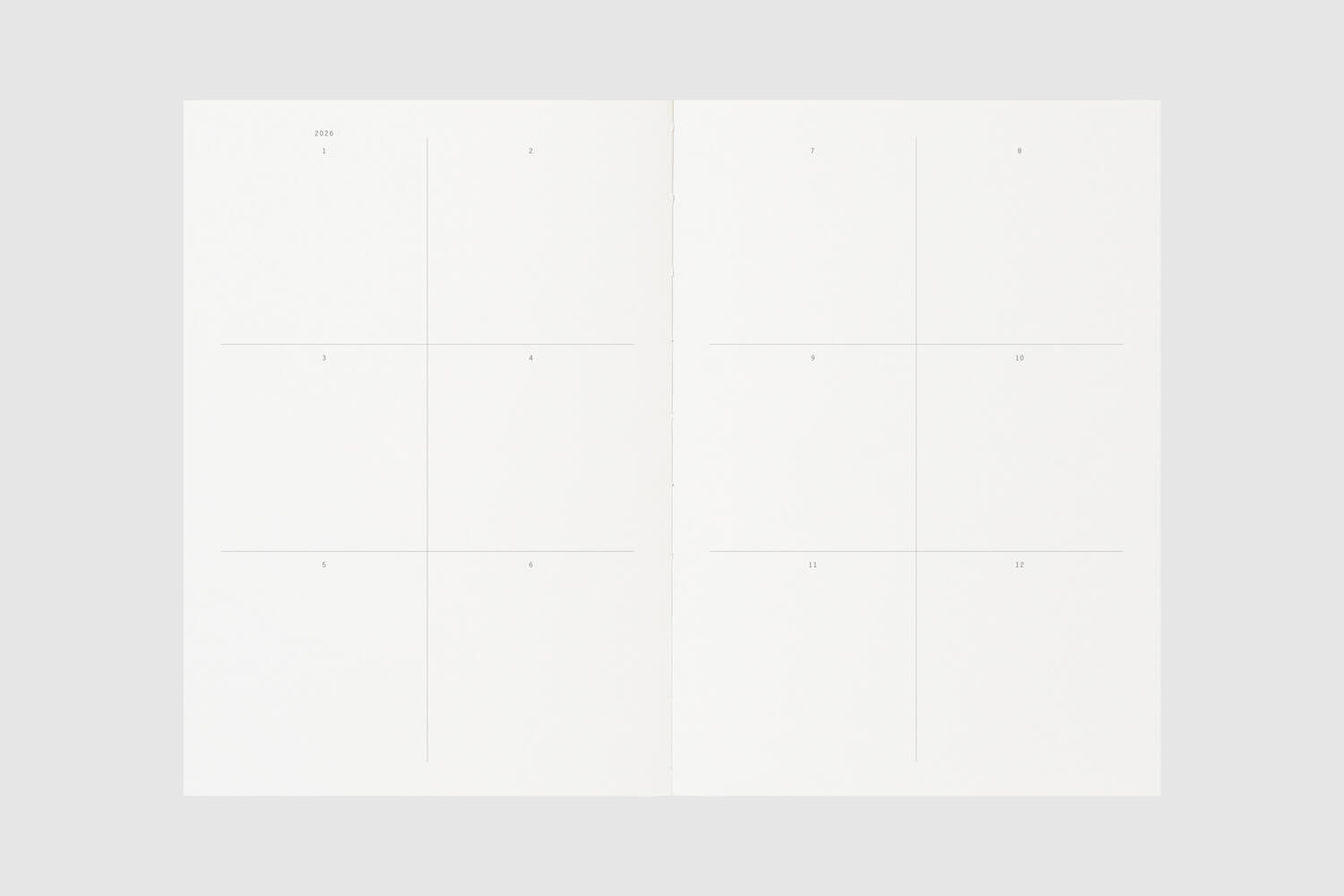The 2026 Diary is a yearly planner crafted with a focus on material and function, featuring a unique cover colored naturally with cocoa shell powder. The smooth, 120g Munken Pure inner pages are specially suited for comfortable writing and highly compatible with fountain pens. Thanks to its exposed thread binding, the diary lays perfectly flat (180°), and the weekly pages include an index feature for easy reference. Capture your entire year effortlessly, enjoying the pleasant texture and premium feel of this meticulously designed diary.