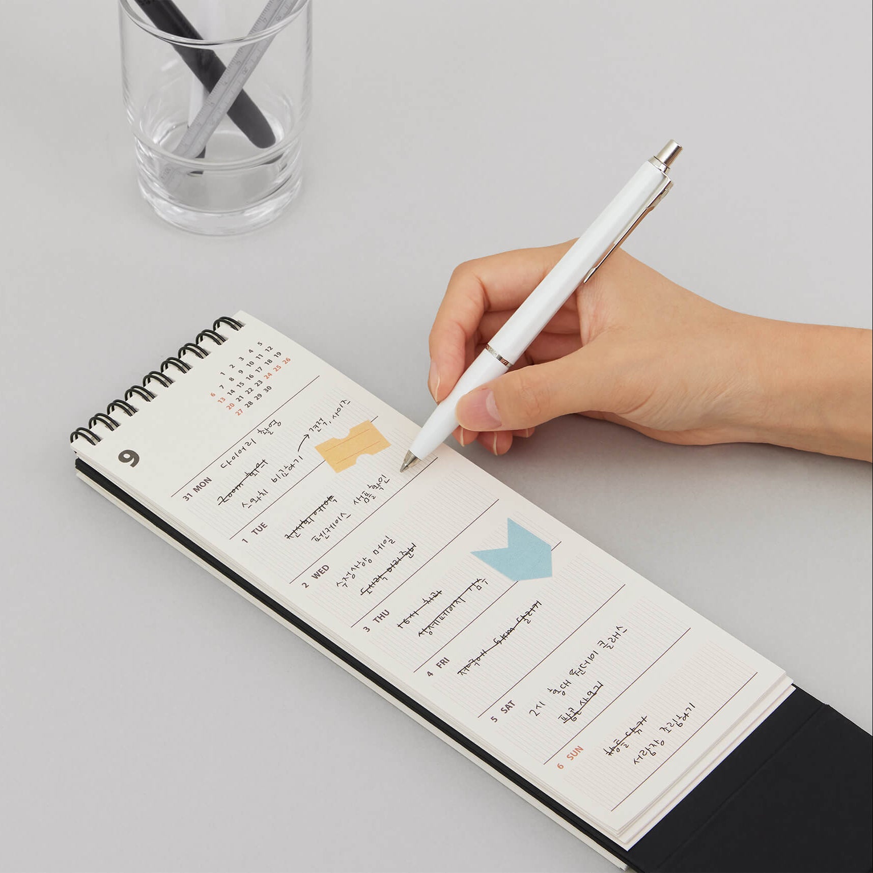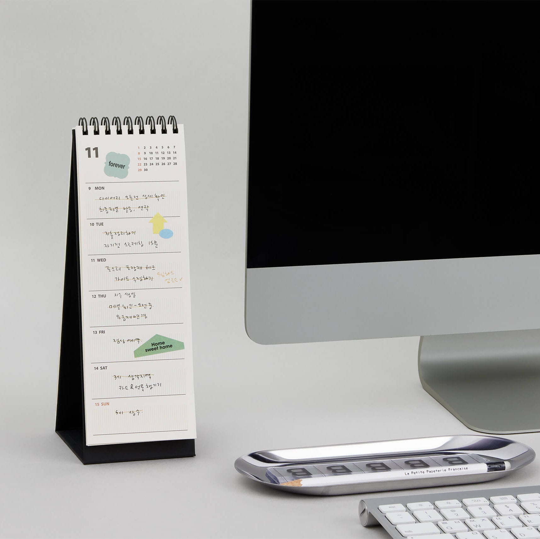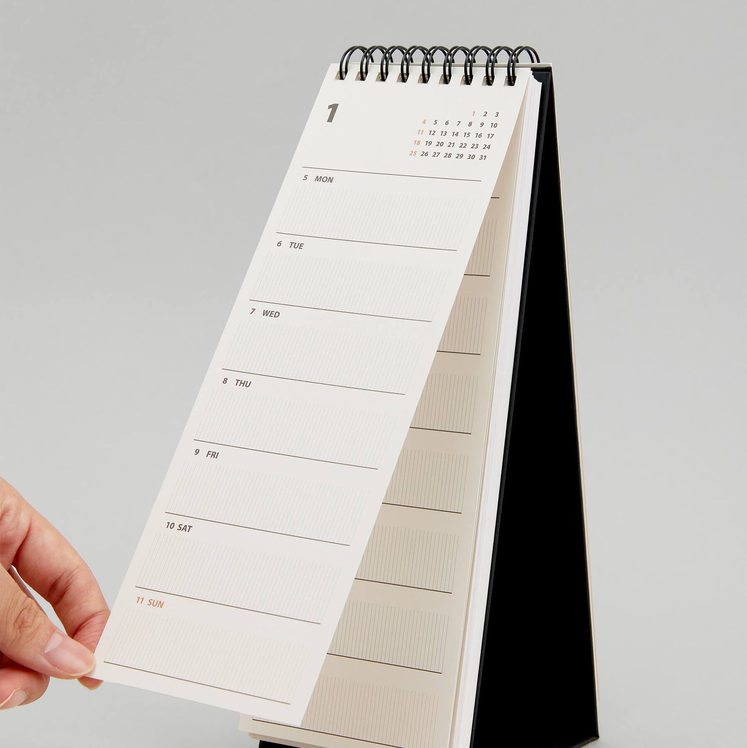 The slim, vertical layout is optimized for desks, shelves, or small work areas, keeping your week visible without clutter.