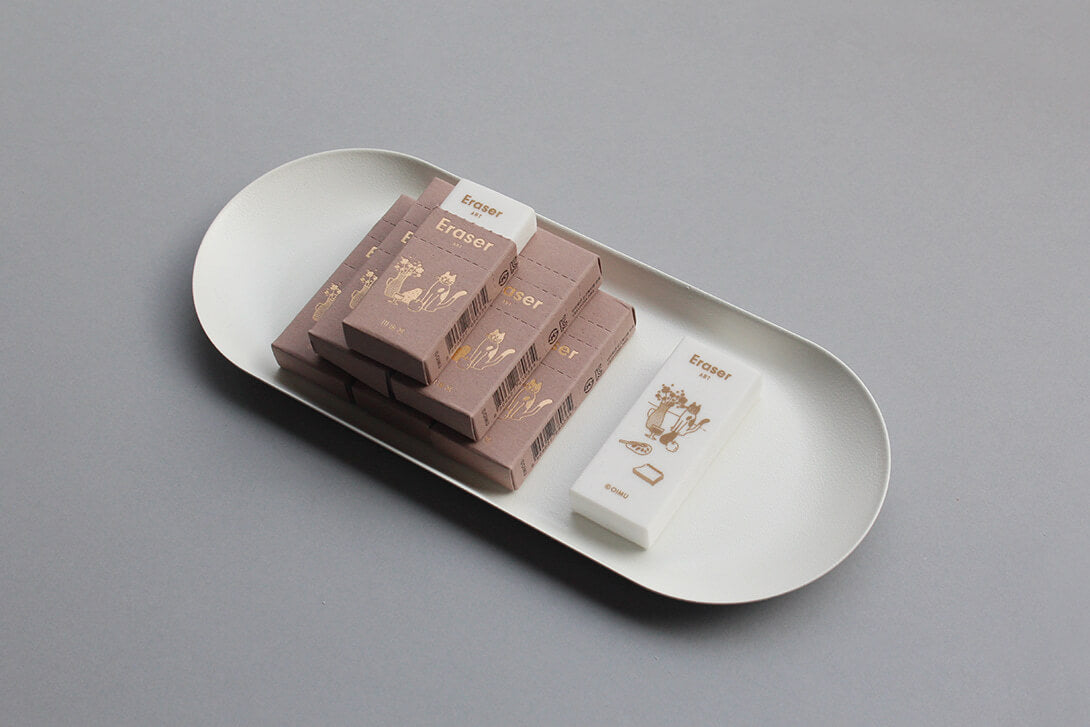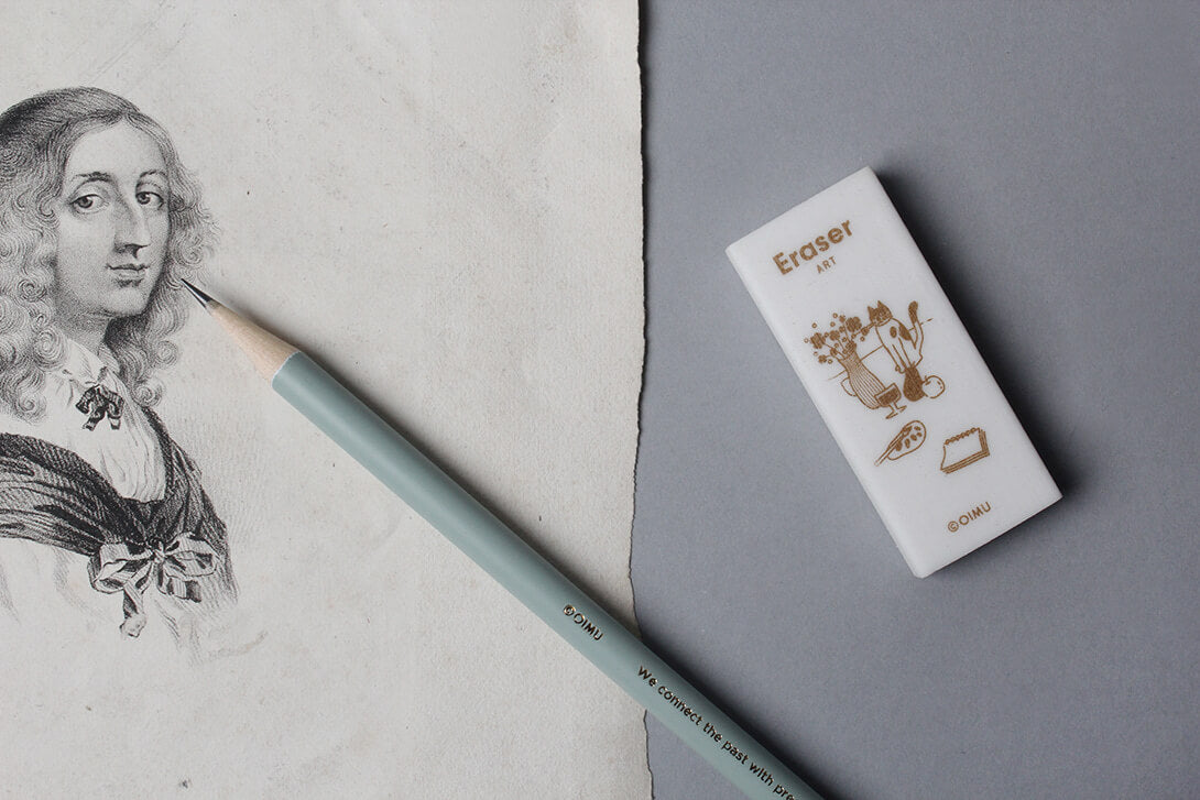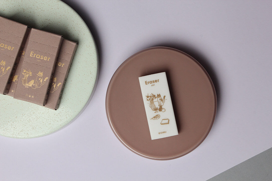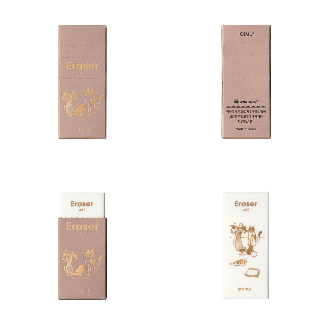 Art Eraser The Art Eraser is a high-performance functional tool designed with a fine-grain texture that lifts graphite cleanly while minimizing paper damage. Proudly manufactured in Korea by the renowned HWARANG Rubber, it uses safe, non-phthalate plasticizers. Each eraser features a serene illustration of still-life objects and a cat, blending professional quality with artistic warmth.