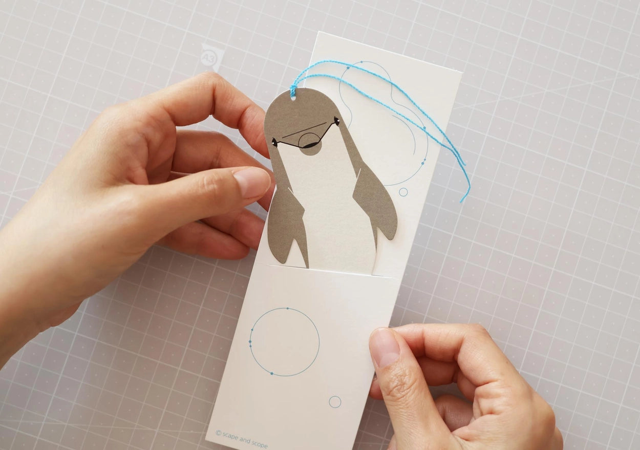 Thoughtful Design: Slide the dolphin into the slit so it appears to be peeking just above the water's surface. This holder prevents the bookmark from bending or fraying and serves as an elegant gift wrap.