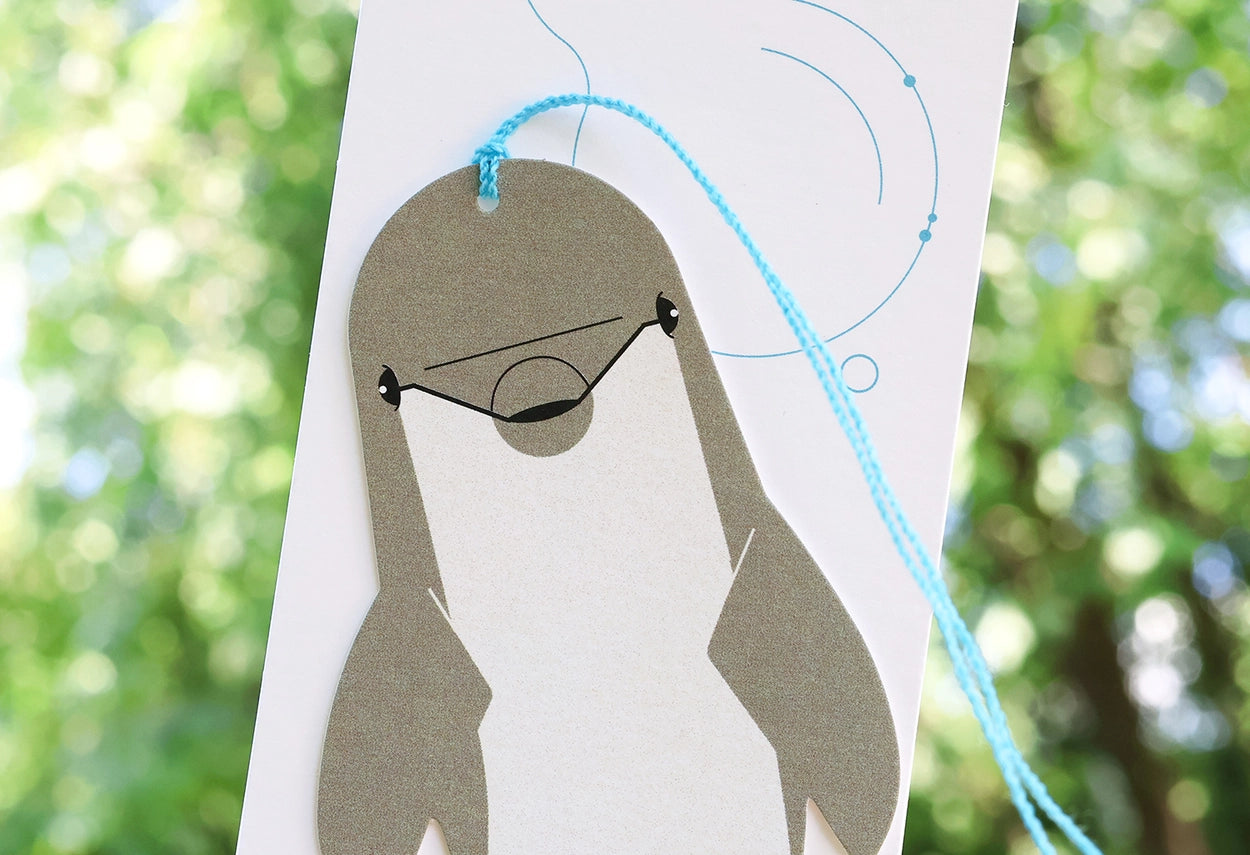 The quintessential bookmark: a thick paper card with a simple string. Inspired by the natural world, this design combines classic simplicity with the majestic presence of the humpback whale.