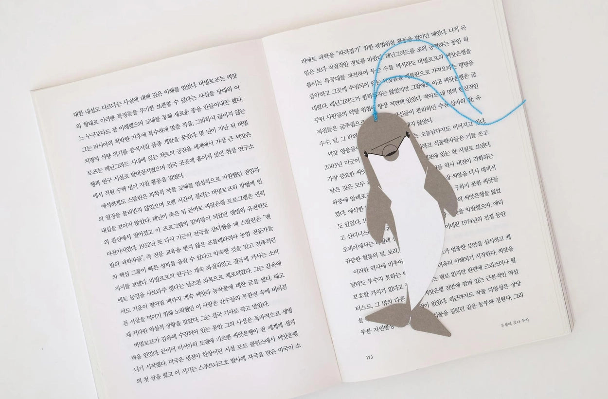 Inspired by the ocean and the earth, we have reimagined the bookmark's string as a whale’s water spout or a plant's stem. Let the cool spray from a blowhole or a fresh green stem guide your place in a book, adding a small touch of joy to the beginning and end of your reading.