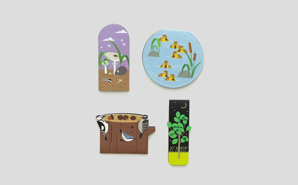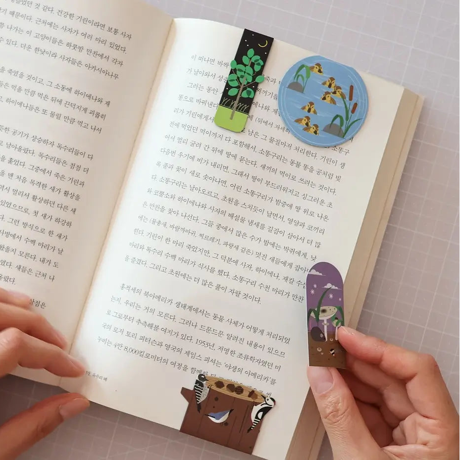 Celebrate the harmony of nature with illustrations of lush trees, moss, and forest life. This set of four unique designs brings a touch of woodland tranquility to your daily reading routine.