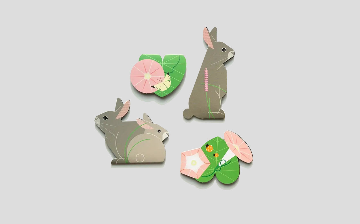 Features gentle illustrations of rabbits, reflecting their nature of building cozy burrows for their young. This pack includes four different designs, ideal for marking multiple books at once or as a thoughtful gift.