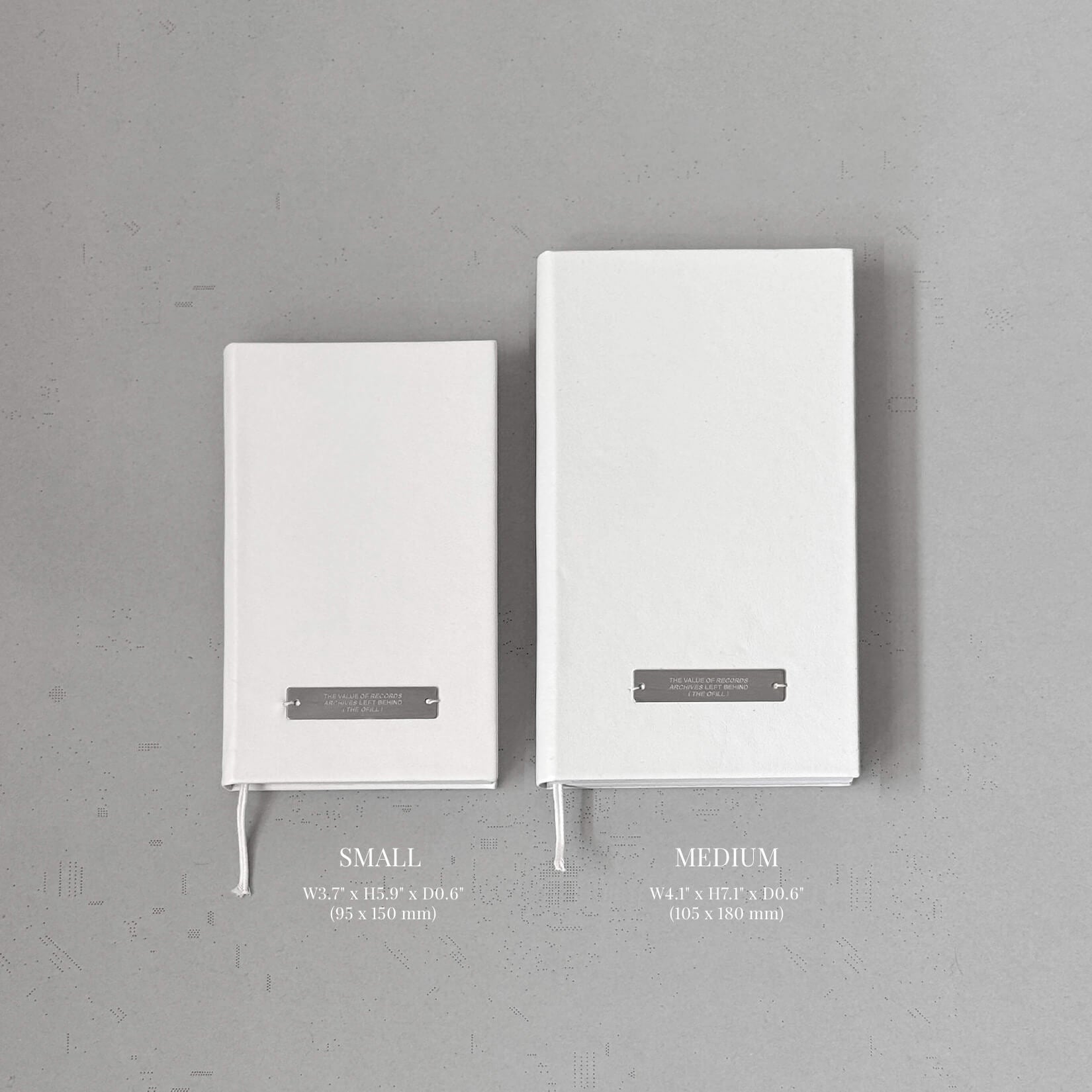 This edition features a crisp white that defines a clean and timeless aesthetic. Hand-finished with care, each notebook provides a calm, open space for your thoughts. It is a simple, grounding tool for those who find beauty in the most essential form of records.
