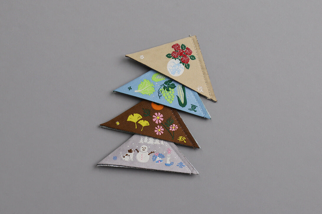 The bookmark features a three-dimensional cone shape designed to snugly "hug" the corner of your page, ensuring it stays securely in place. Available in various seasonal motifs, it serves as a beautiful and practical tool to mark your progress through spring, summer, autumn, and winter.