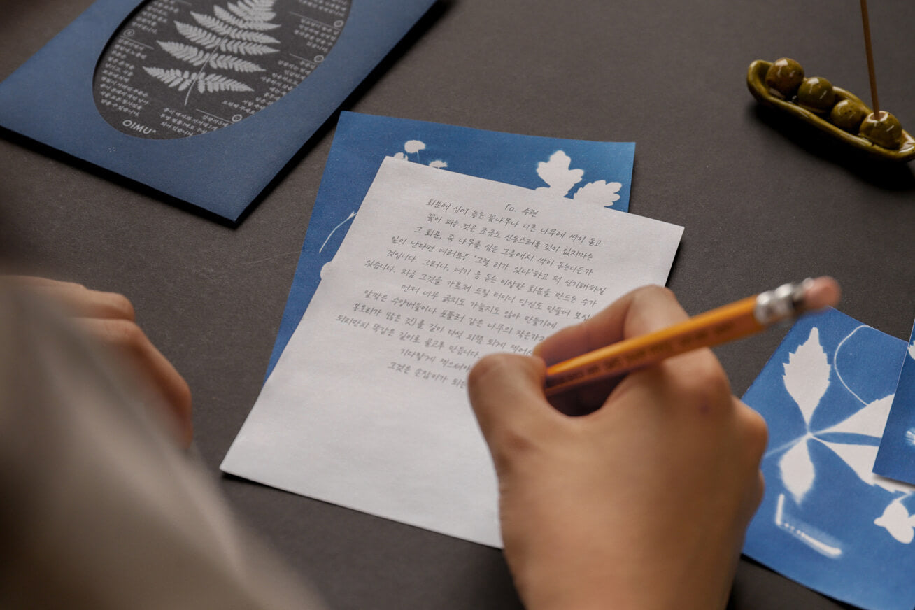 Turn sunlight into art. This kit invites you to experience the classic 18th-century blueprinting technique. By placing objects on light-sensitive paper and exposing them to the sun, you can create poetic, deep-blue silhouettes. Write a message on the back of your handmade print to share or preserve a special moment forever.
