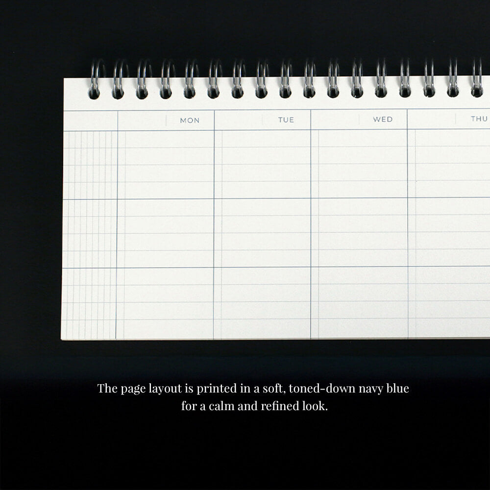 A horizontal-format, undated weekly scheduler designed to help you stay organized at a glance — perfect for use in front of your monitor or on your desk.