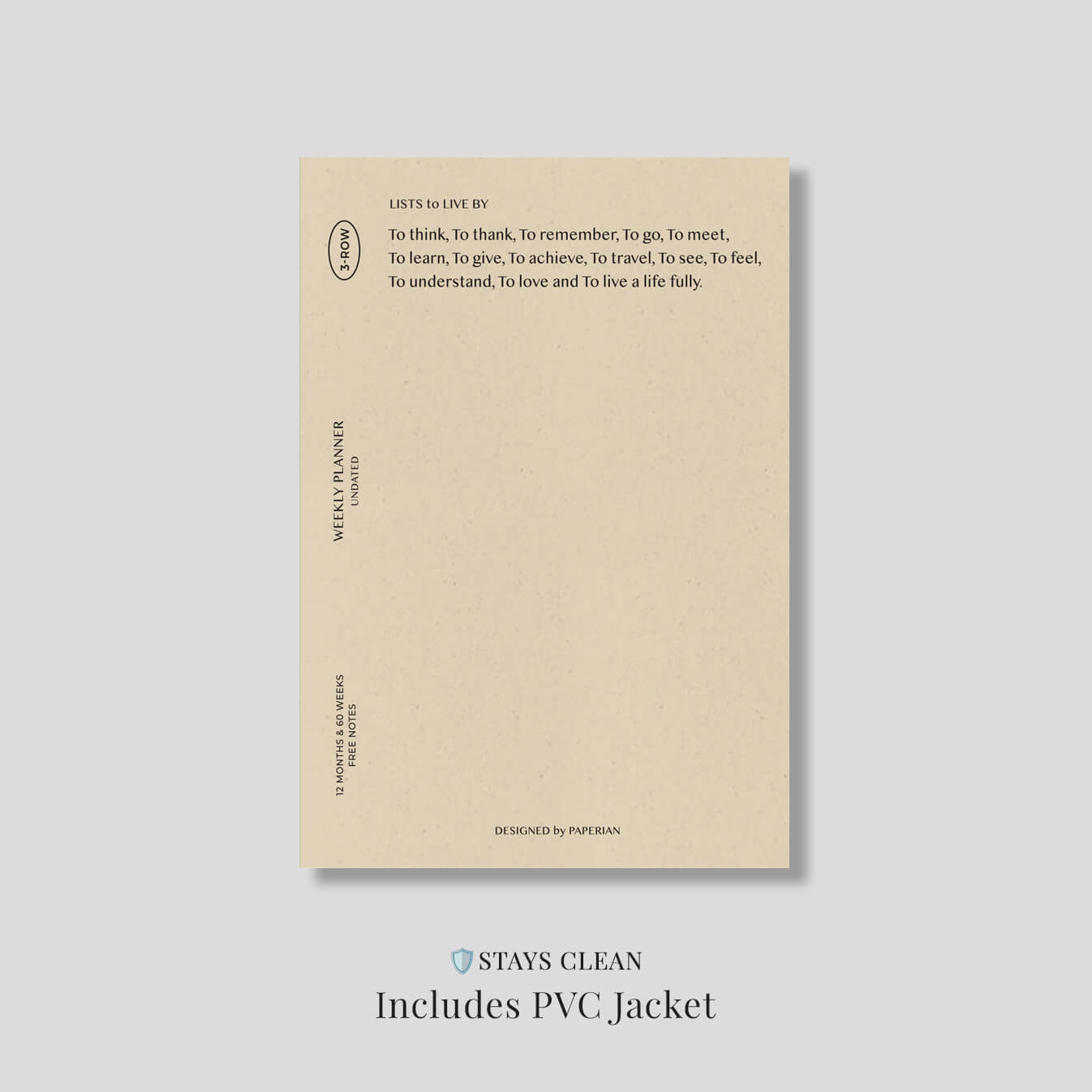 An undated planner designed to help you reflect, act, and live with intention — by organizing your days through meaningful lists and structured planning.