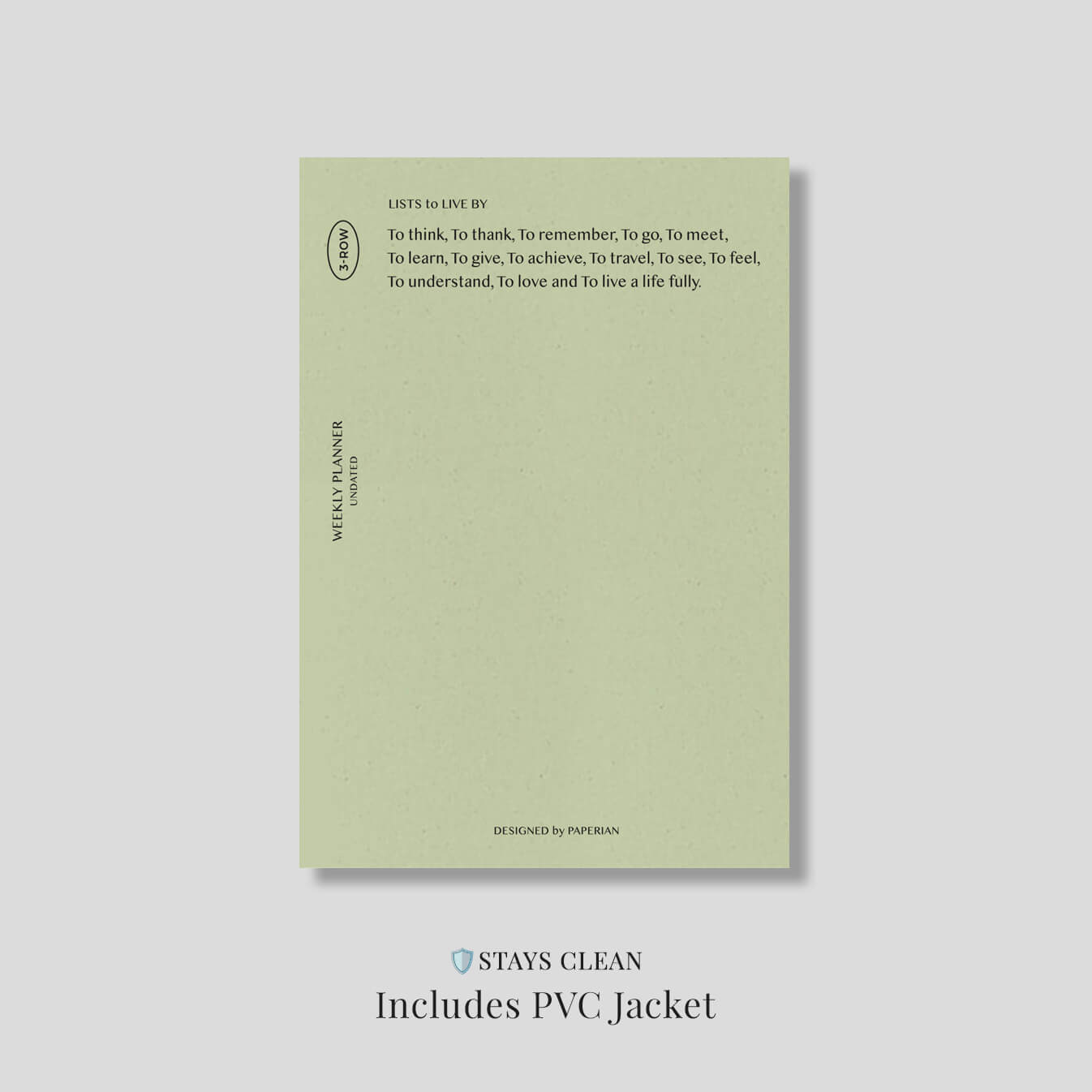An undated planner designed to help you reflect, act, and live with intention — by organizing your days through meaningful lists and structured planning.