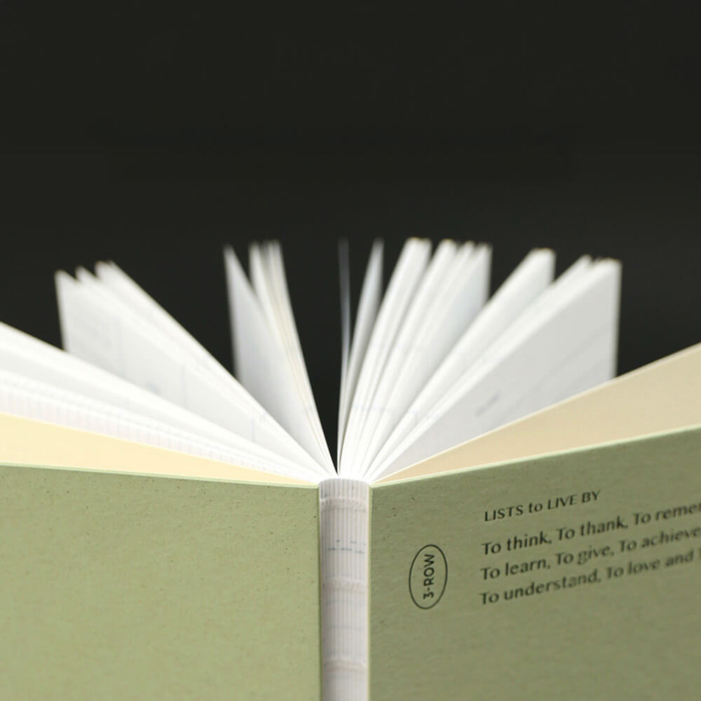 Exposed Smyth binding allows the planner to open completely flat, making it easier to use every part of the page.