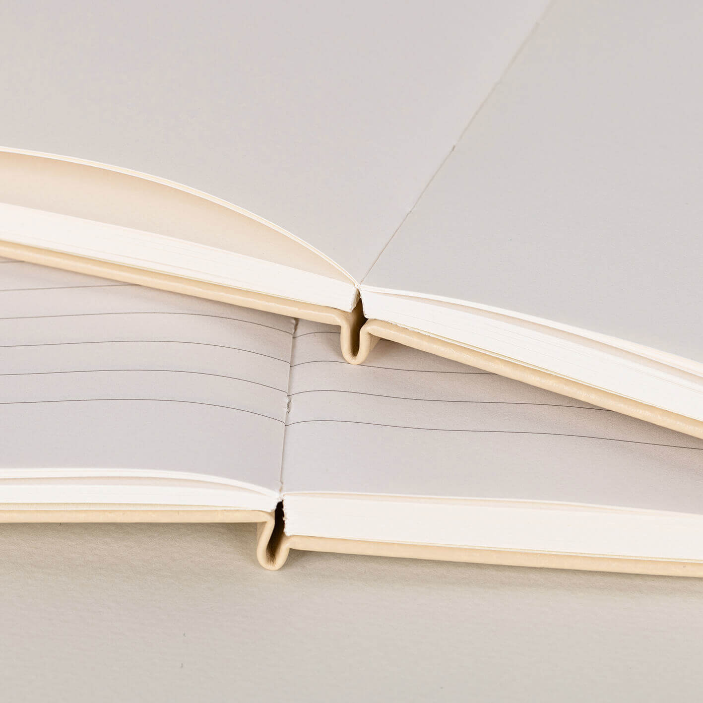 Paper Our meticulous case-binding ensures the notebook opens perfectly flat (180°) for effortless writing from edge to edge. The 192 pages of thick, 100gsm off-white paper are designed to minimize ghosting and ink bleed-through.