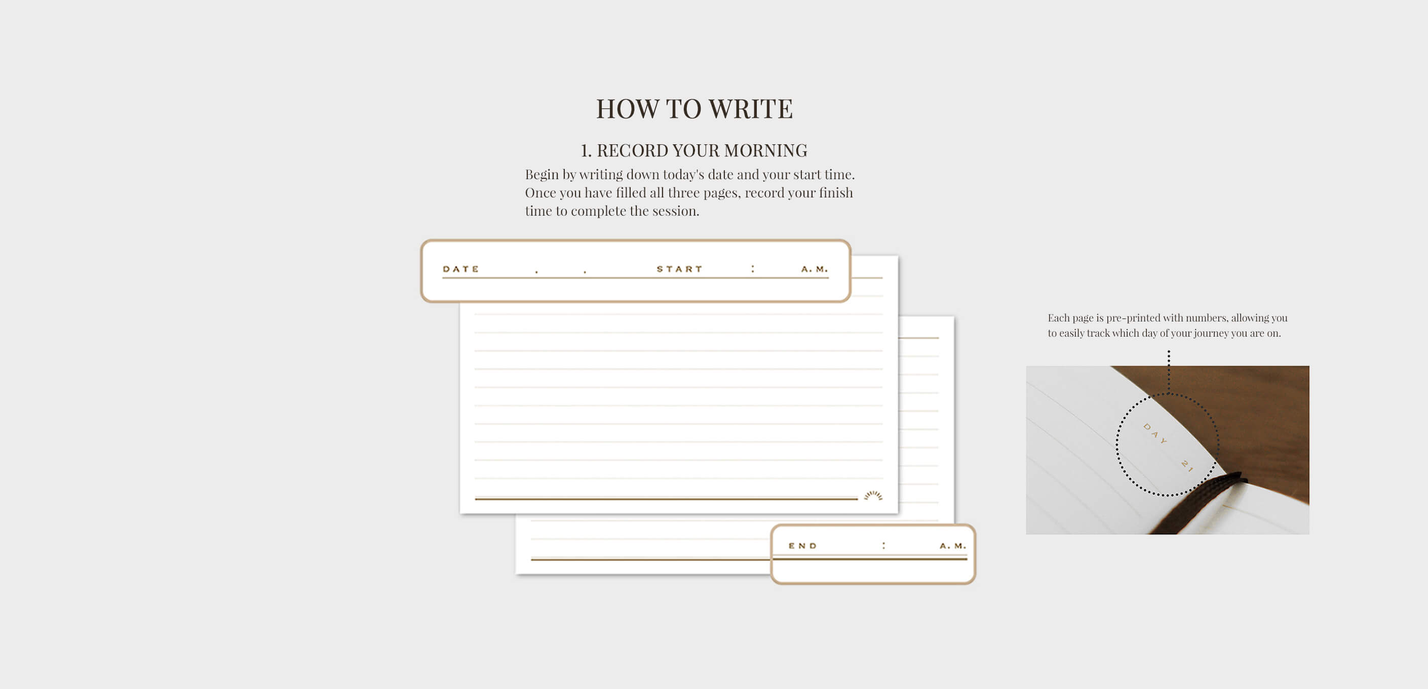 The layout is thoughtfully crafted to support your first thoughts of the day. With pre-printed numbers for a 63-day journey, it serves as a reliable tool for mental preparation, making it easier than ever to maintain a consistent morning ritual.