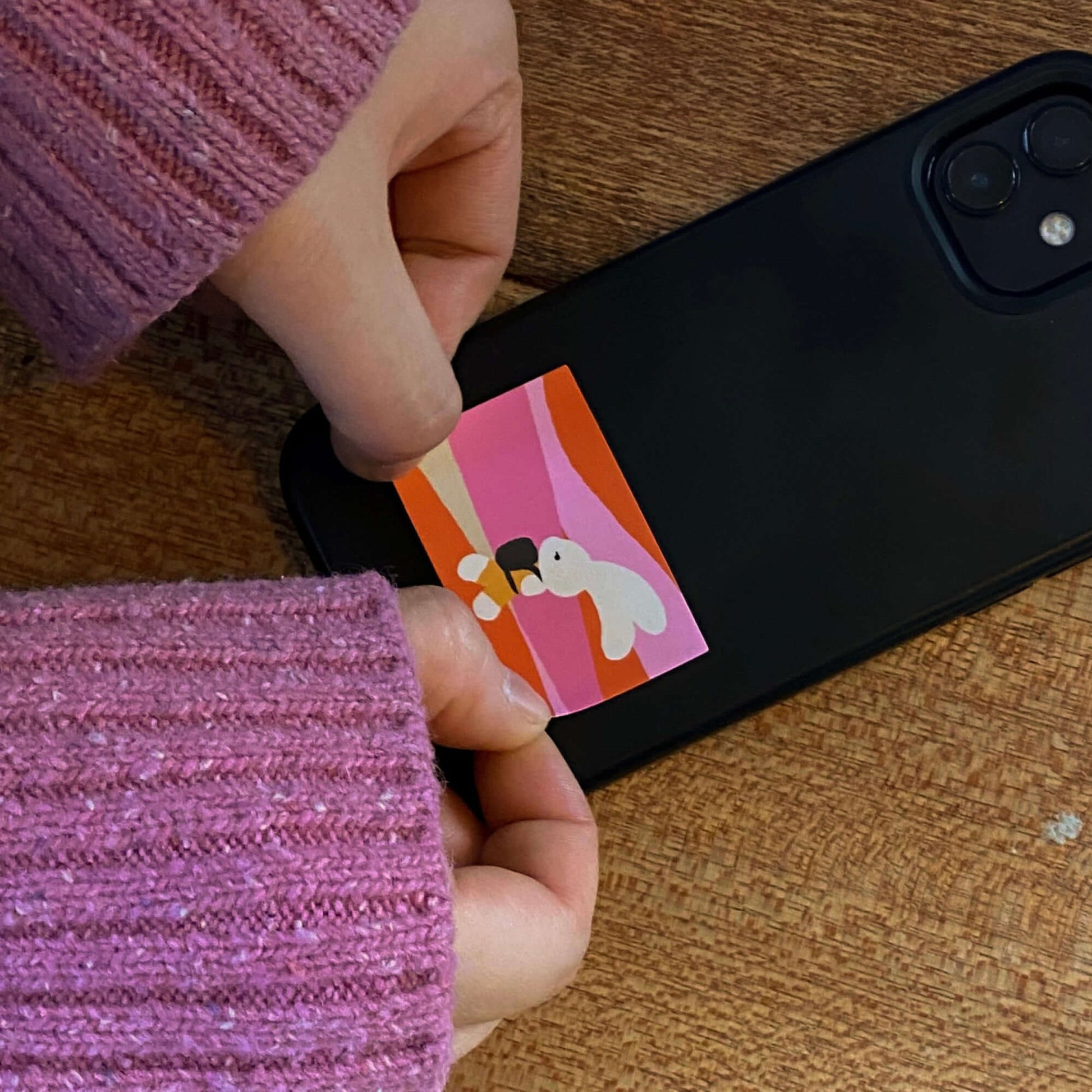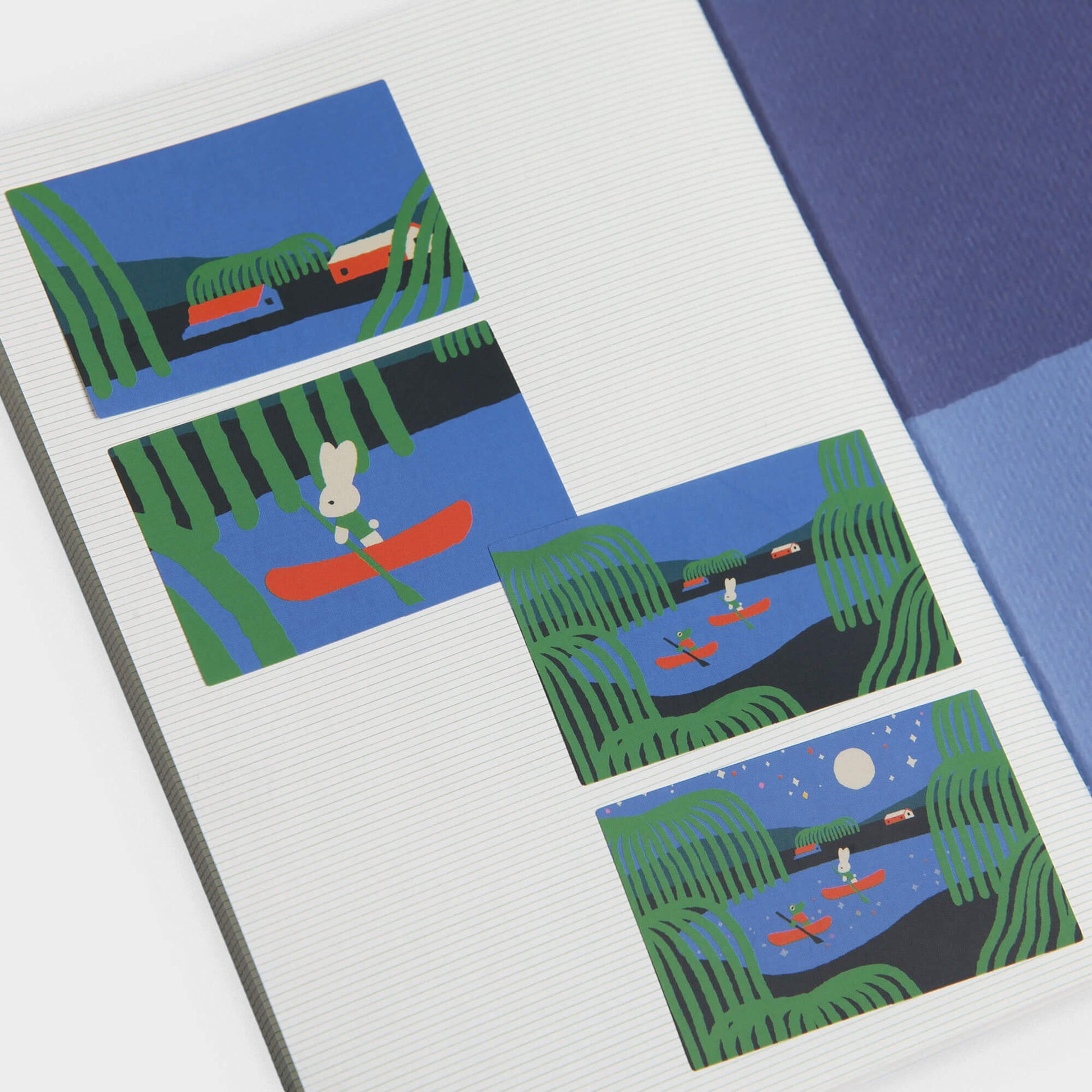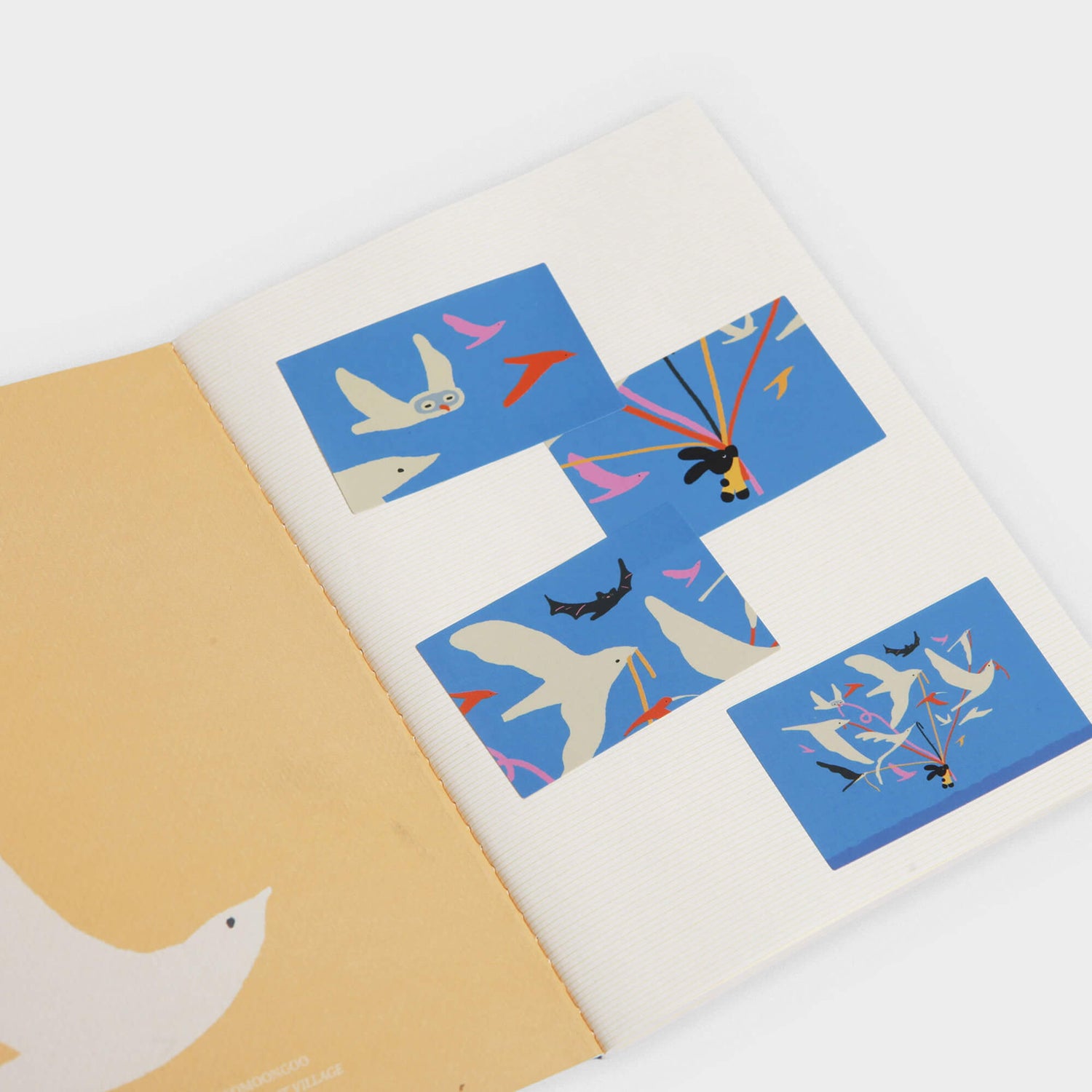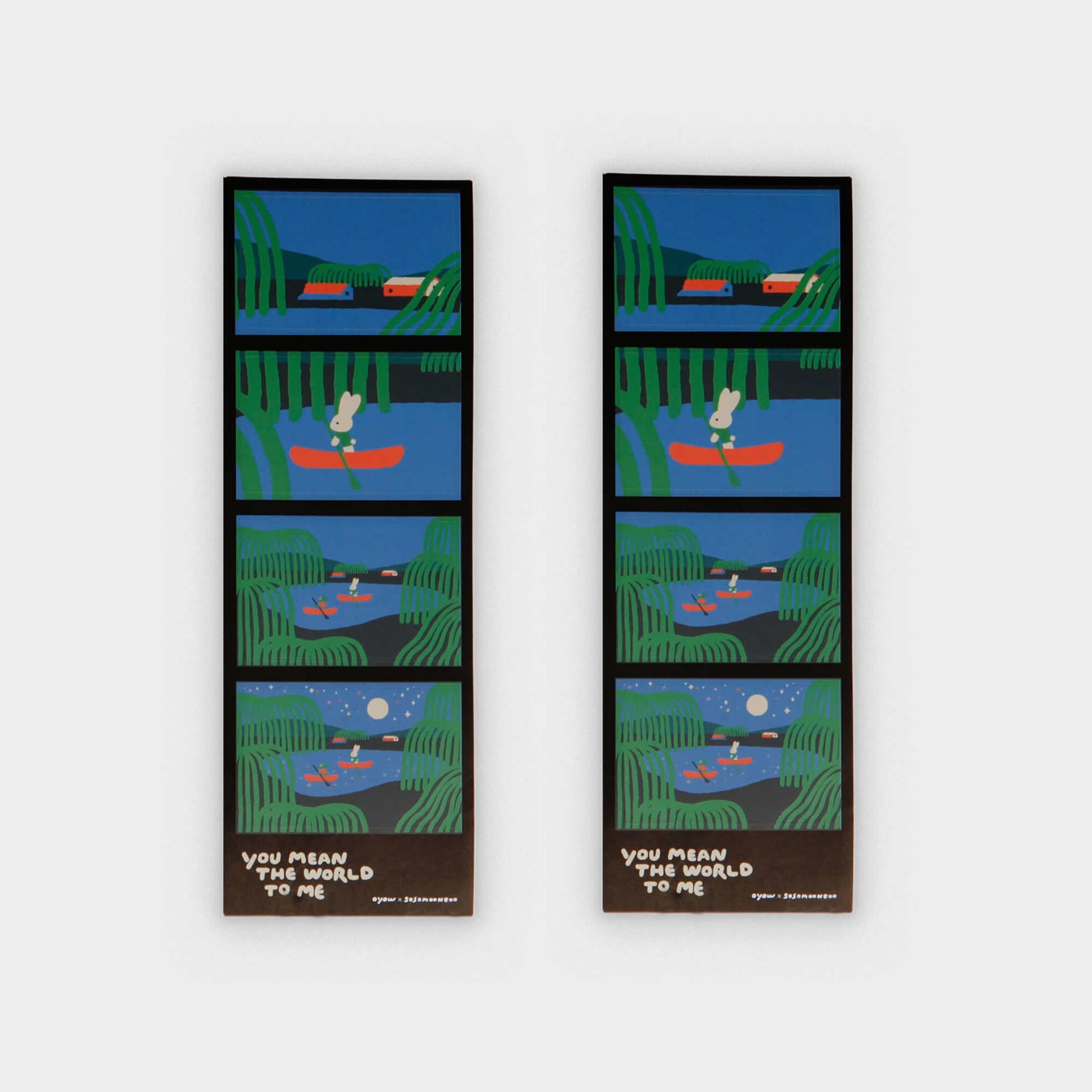 Inspired by the classic photo booth format, these stickers tell a gentle visual story through four sequential illustrations that capture a single, fleeting moment.