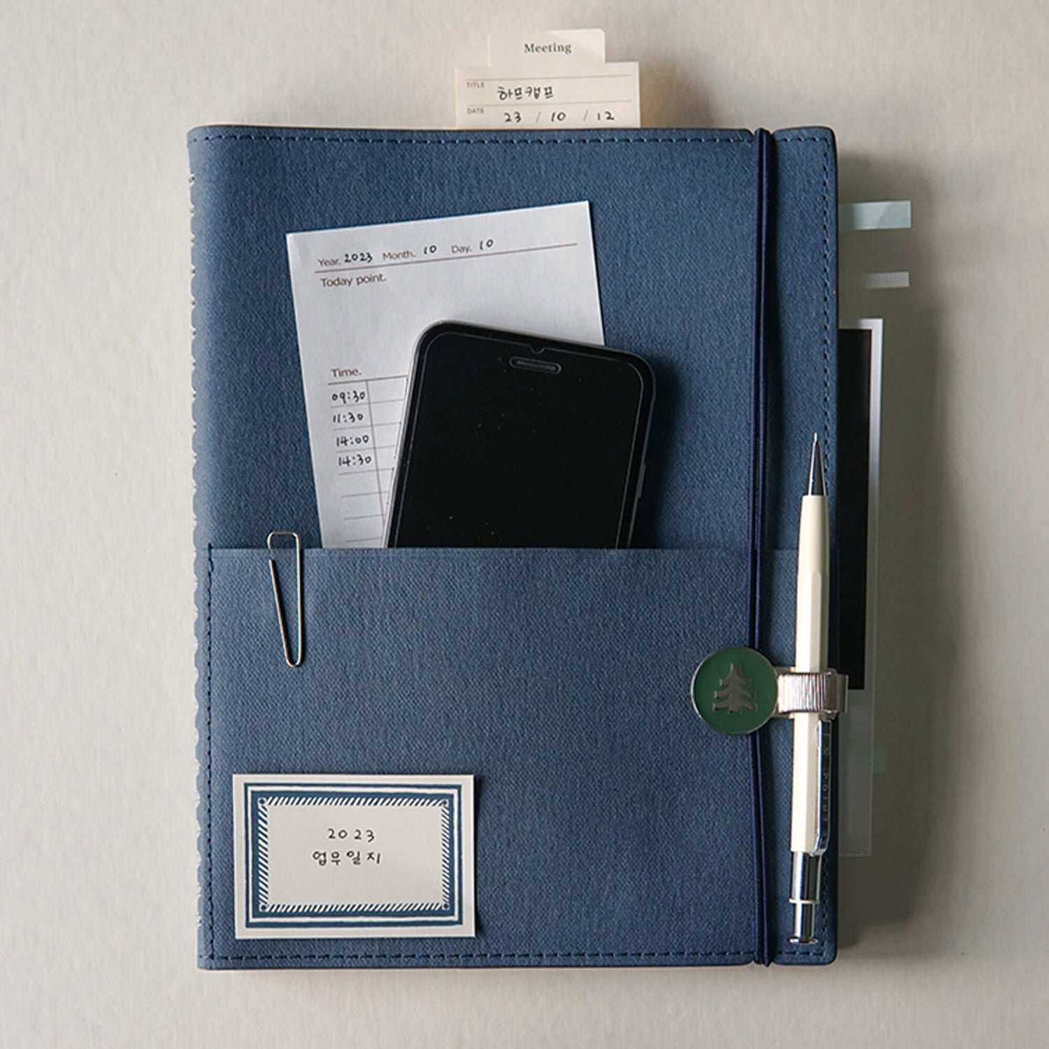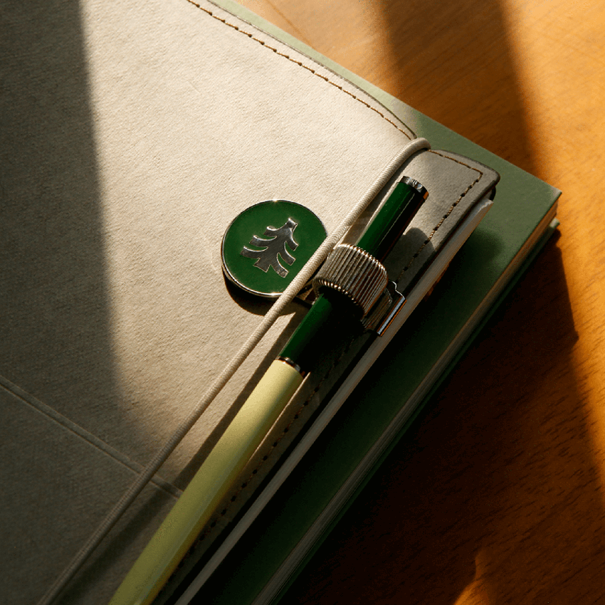 A sophisticated and functional metal pen holder designed to keep your writing tools secure and accessible. With its classic and timeless design, it serves as a perfect companion for any notebook or planner, ensuring your creative process is never interrupted by the search for a pen.