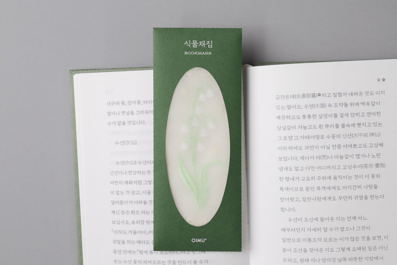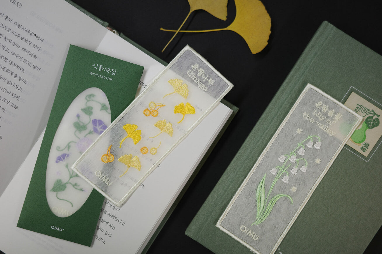 The bookmark is made from Nobang, a sheer and elegant fabric traditionally used in Korean Hanbok. By layering two sheets of Nobang and finishing all four edges, the bookmark maintains a slim profile that won't damage your book while providing a surprisingly durable and sturdy grip. The delicate embroidery captures the timeless spirit of nature.