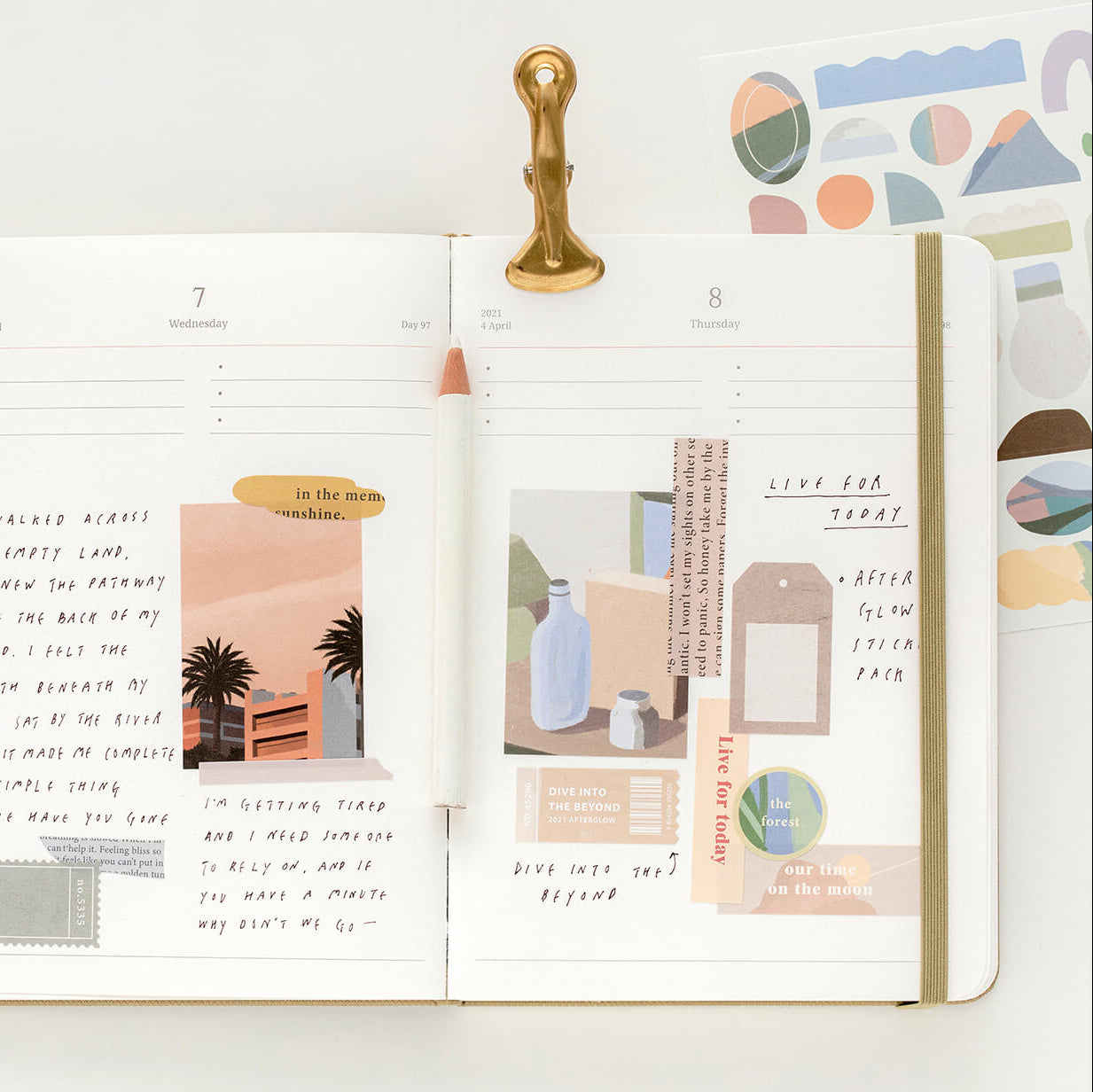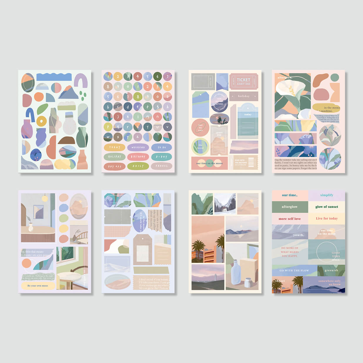 Add a touch of warmth and soft emotion to your daily life. The 'Afterglow' sticker pack is an aesthetic stationery essential for anyone who loves to document their days.