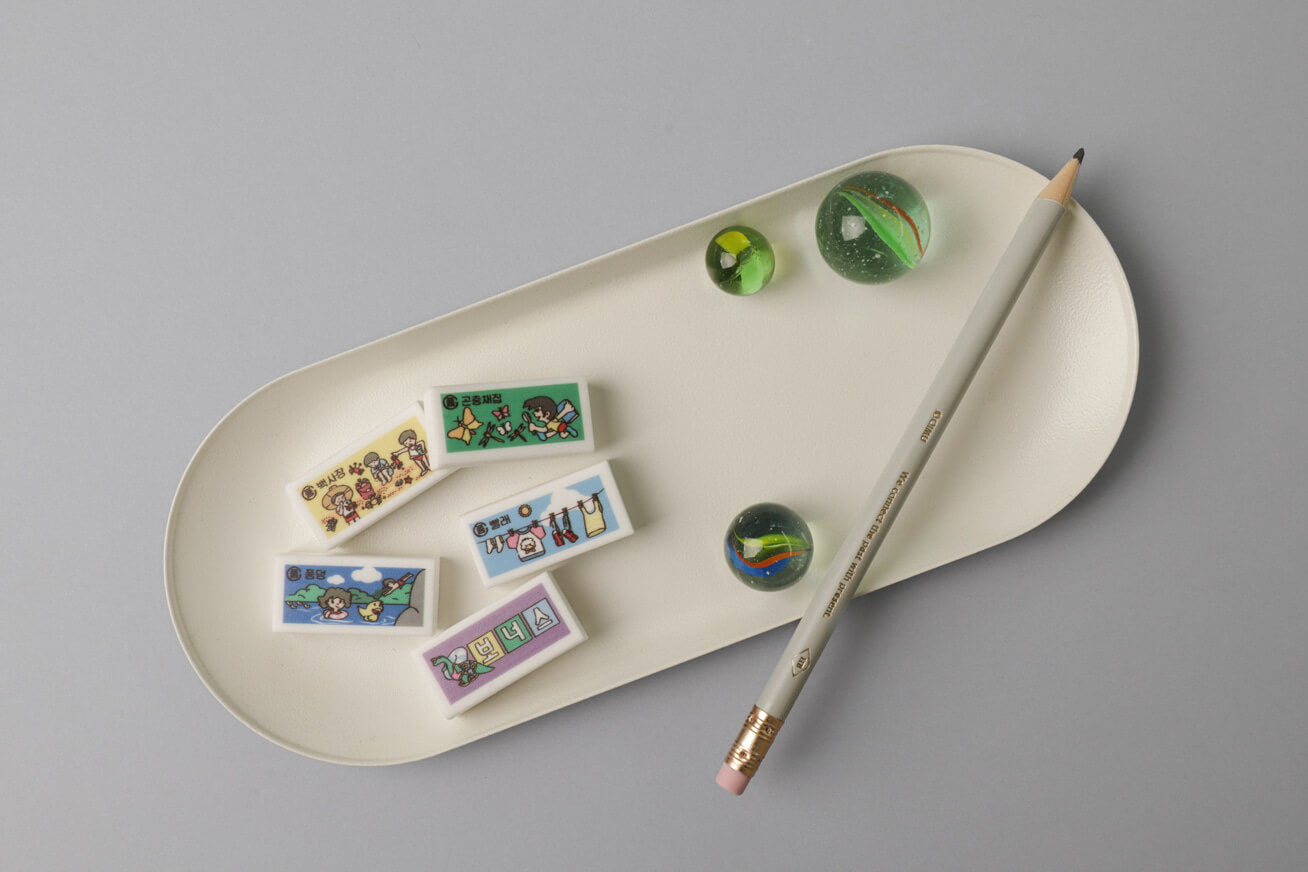 Bring a page from your hottest yet brightest summer vacation to your desk. This modular eraser set, presented by OIMU and HWARANG, reproduces the colors and textures of the summers we explored as children. With three erasers tucked into a single package, it serves as a nostalgic object of art even when it is not being used.
