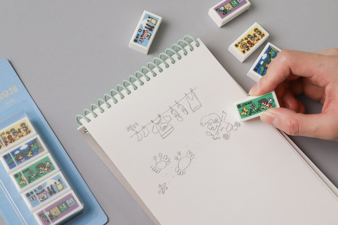 The modular design, featuring three erasers side-by-side, offers visual satisfaction while maintaining the smooth and clean erasing performance unique to HWARANG erasers. The sleeve design, enhanced by OIMU’s sensible graphics, transforms your daily writing time into something truly special.